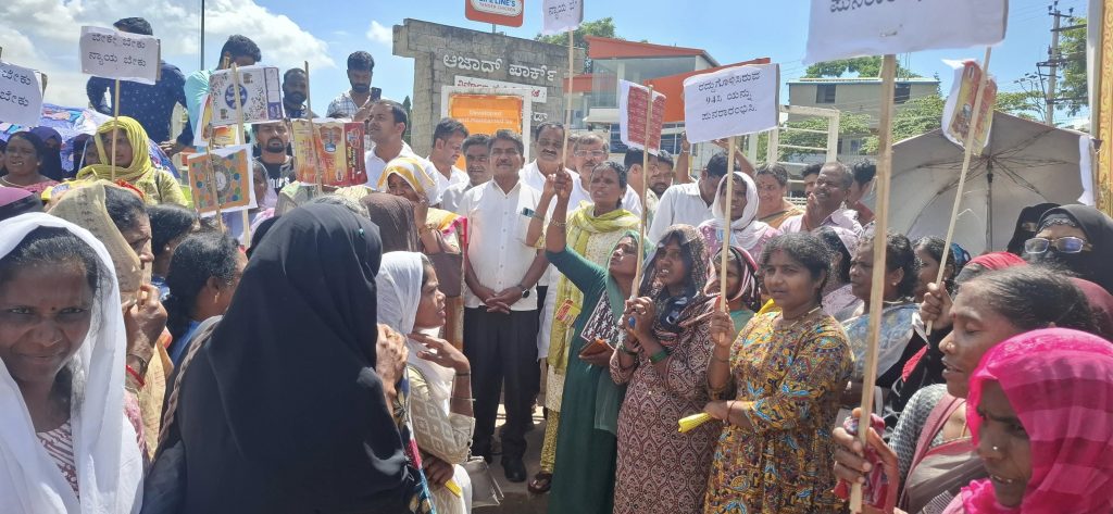 ಚಿಕ್ಕಮಗಳೂರು ಜಿಲ್ಲಾಧಿಕಾರಿಗಳ ಆವರಣದಲ್ಲಿ ಸಮಾವೇಶಗೊಂಡು ಉಪವಿಭಾಗಾಧಿಕಾರಿಗಳಿಗೆ ಮನವಿ ಸಲ್ಲಿಸಿದರು.