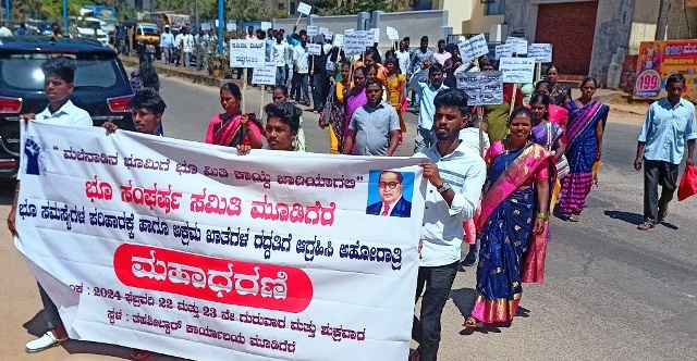 ಭೂ ಸಮಸ್ಯೆಗಳ ಪರಿಹಾರ ಹಾಗೂ ಅಕ್ರಮ ಭೂ ಖಾತೆ ರದ್ಧತಿಗೆ ಆಗ್ರಹಿಸಿ ಗುರುವಾರ ಭೂ ಸಂಘರ್ಷ ಸಮಿತಿ ವತಿಯಿಂದ ಮೂಡಿಗೆರೆ ಪಟ್ಟಣದ ತಾಲೂಕು ಕಚೇರಿ ಎದುರು ಅಹೋರಾತ್ರಿ ಮಹಾಧರಣಿ ಪ್ರಾರಂಭಿಸಲಾಯಿತು.