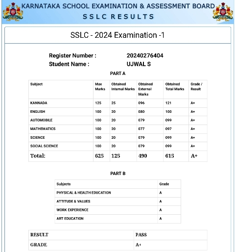 ಬೆಂಗಳೂರು ಮೂಲದ ಅವರ ತಂದೆ ಪ್ರಸ್ತುತ ಮೂಡಿಗೆರೆ ತಾಲ್ಲೂಕಿನ ಊರುಬಗೆಯಲ್ಲಿ ಜಮೀನು ಖರೀದಿಸಿ ಕೃಷಿ ಮಾಡುತ್ತಿದ್ದು, ತನ್ನ ಮಗನನ್ನು ಸರ್ಕಾರಿ ಶಾಲೆಗೆ ಸೇರಿಸಬೇಕು ಎಂಬ ಕಾಳಜಿಯಿಂದ ಮೂಡಿಗೆರೆ ಸರ್ಕಾರಿ ಪ್ರೌಢಶಾಲೆಗೆ ಸೇರಿಸಿದ್ದರು. ಇದೀಗ ಉಜ್ವಲ್ 625ಕ್ಕೆ 615 ಅಂಕಗಳನ್ನು ಗಳಿಸಿ ಮೂಡಿಗೆರೆ ತಾಲ್ಲೂಕಿಗೆ ಪ್ರಥಮ ಸ್ಥಾನ ಗಳಿಸಿದ್ದಾನೆ. ಮಗನ ಸಾಧನೆಗೆ ಪೋಷಕರು ಸಂತಸ ವ್ಯಕ್ತಪಡಿಸಿದ್ದಾರೆ.