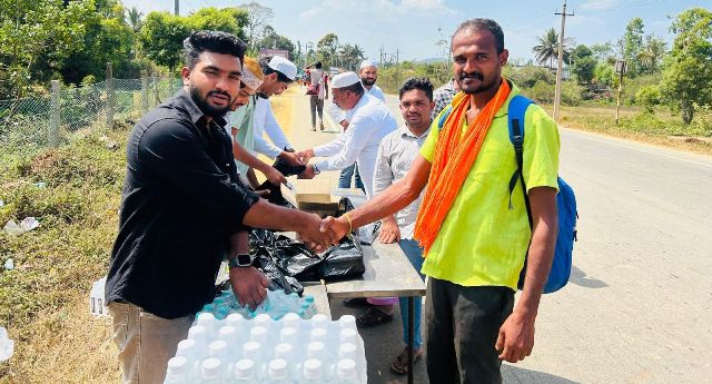ಗ್ರಾಮದ ಮುಖ್ಯ ರಸ್ತೆಯ ಬಳಿಯಲ್ಲಿ ತಾತ್ಕಾಲಿಕ ಶಿಬಿರವನ್ನು ನಿರ್ಮಿಸಿ ಭಕ್ತರಿಗೆ ಪಲಾವ್, ಸಲಾಡ್ ಮತ್ತು ಕುಡಿಯುವ ನೀರು ವಿತರಿಸಲಾಯಿತು. ಆಹಾರವನ್ನು ಸ್ವಚ್ಛತೆಯೊಂದಿಗೆ ಸಿದ್ಧಪಡಿಸಿ, ಪ್ರತಿಯೊಬ್ಬ ಯಾತ್ರಿಕನಿಗೂ ಸಮರ್ಪಕವಾಗಿ ತಲುಪುವಂತೆ ವ್ಯವಸ್ಥೆ ಮಾಡಲಾಗಿತ್ತು. ಬೆಳಿಗ್ಗೆಯಿಂದಲೇ ಯುವಕರು ಸೇವಾ ಮನೋಭಾವದಿಂದ ಕಾರ್ಯನಿರ್ವಹಿಸಿದರು.