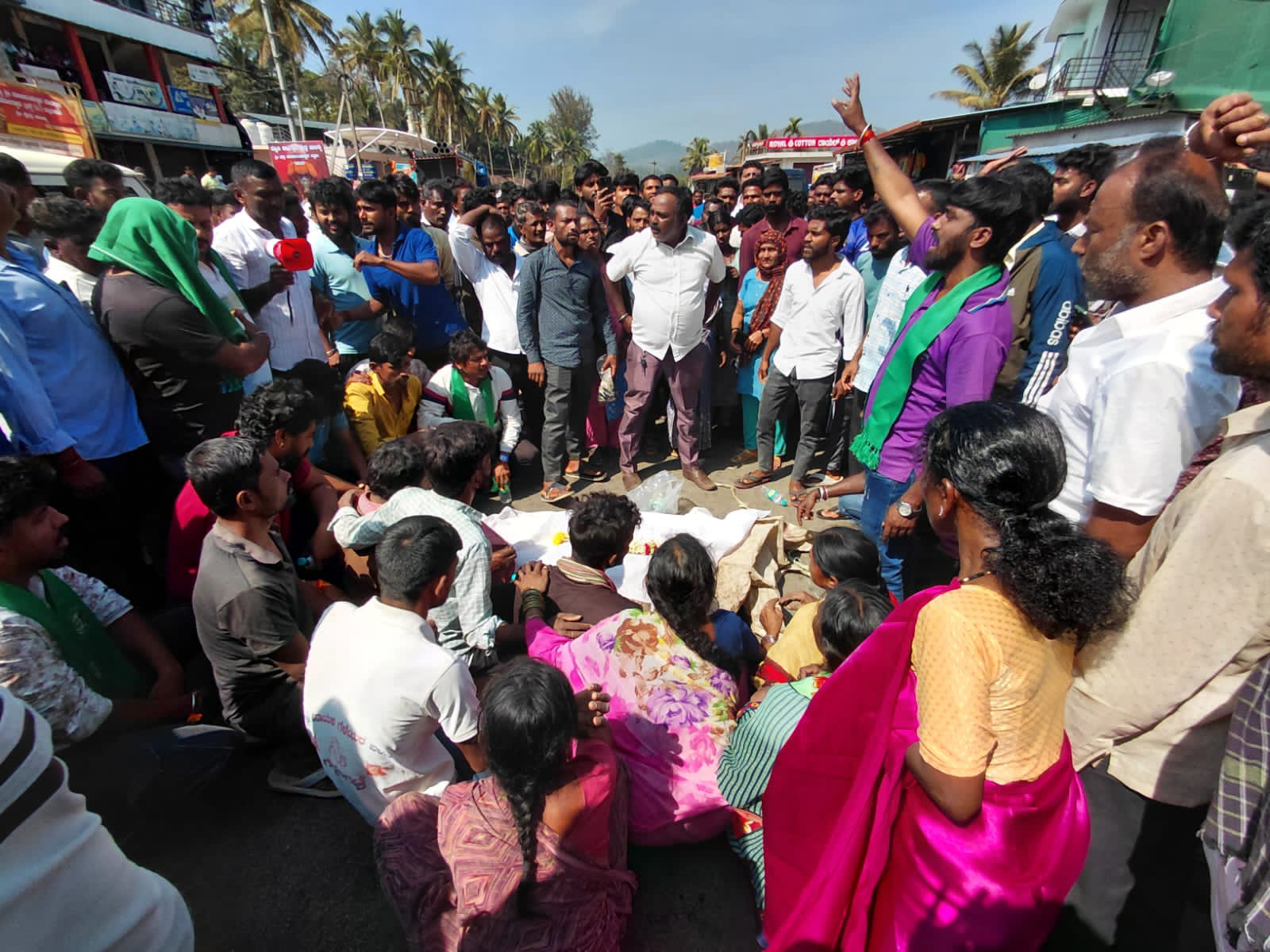ಪಿಕಪ್ ಅಡ್ಡಗಟ್ಟಿ ರಸ್ತೆ ಮಧ್ಯೆ ಶವವಿಟ್ಟು ಪ್ರತಿಭಟನೆ