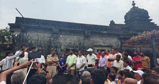 ಸಕಲೇಶಪುರ ಮೂಡಿಗೆರೆ ಗಡಿಭಾಗದ ಮರಗುಂದ ಗ್ರಾಮದ ಬೆಟ್ಟದ ಭೈರವೇಶ್ವರ ದೇವಸ್ಥಾನದಲ್ಲಿ ಪ್ರಿ ವೇಡಿಂಗ್ ಹೆಸರಿನಲ್ಲಿ ಅನುಚಿತವಾಗಿ ನಡೆದುಕೊಂಡ ಛಾಯಾಗ್ರಾಹಕರ ಮೇಲೆ ಗ್ರಾಮದ ಭಕ್ತರು ಹಲ್ಲೆ ನಡೆಸಿದರು ಎಂದು ಇಬ್ಬರನ್ನು ಬಂಧಿಸಿರುವ ಪ್ರಕರಣಕ್ಕೆ ಭಾನುವಾರ ಗ್ರಾಮಸ್ಥರು ದೇವಸ್ಥಾನ ಮಂಡಳಿಯವರು ಮತ್ತು ಪ್ರಶಾಂತ್ ಹಾಗೂ ರಕ್ಷಯ್ ಕುಟುಂಬದವರು, ಭಕ್ತರು ದೇವಸ್ಥಾನದ ಅವರಣದಲ್ಲಿ ಬೃಹತ್ ಸಂಖ್ಯೆಯಲ್ಲಿ ಸಮಾವೇಶಗೊಂಡಿದ್ದರು.